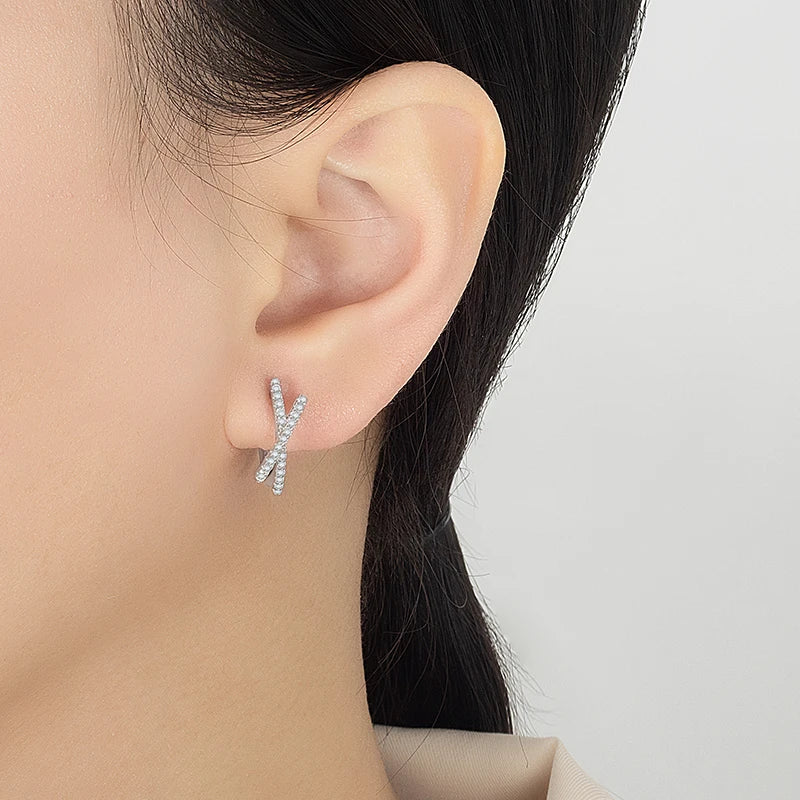 Moissanite Cross Design Hoop Earrings
