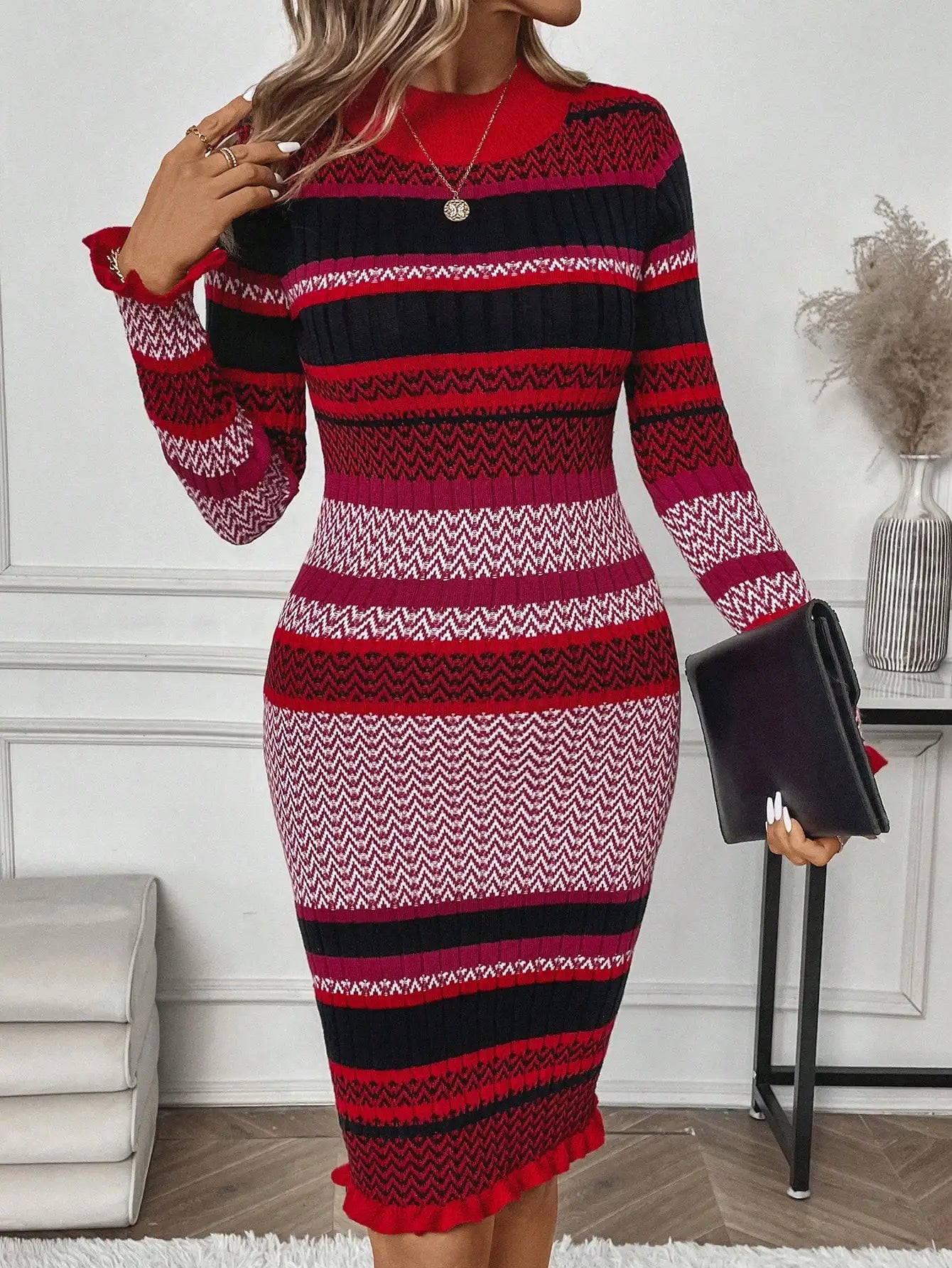 Striped Pattern Sweater Dress